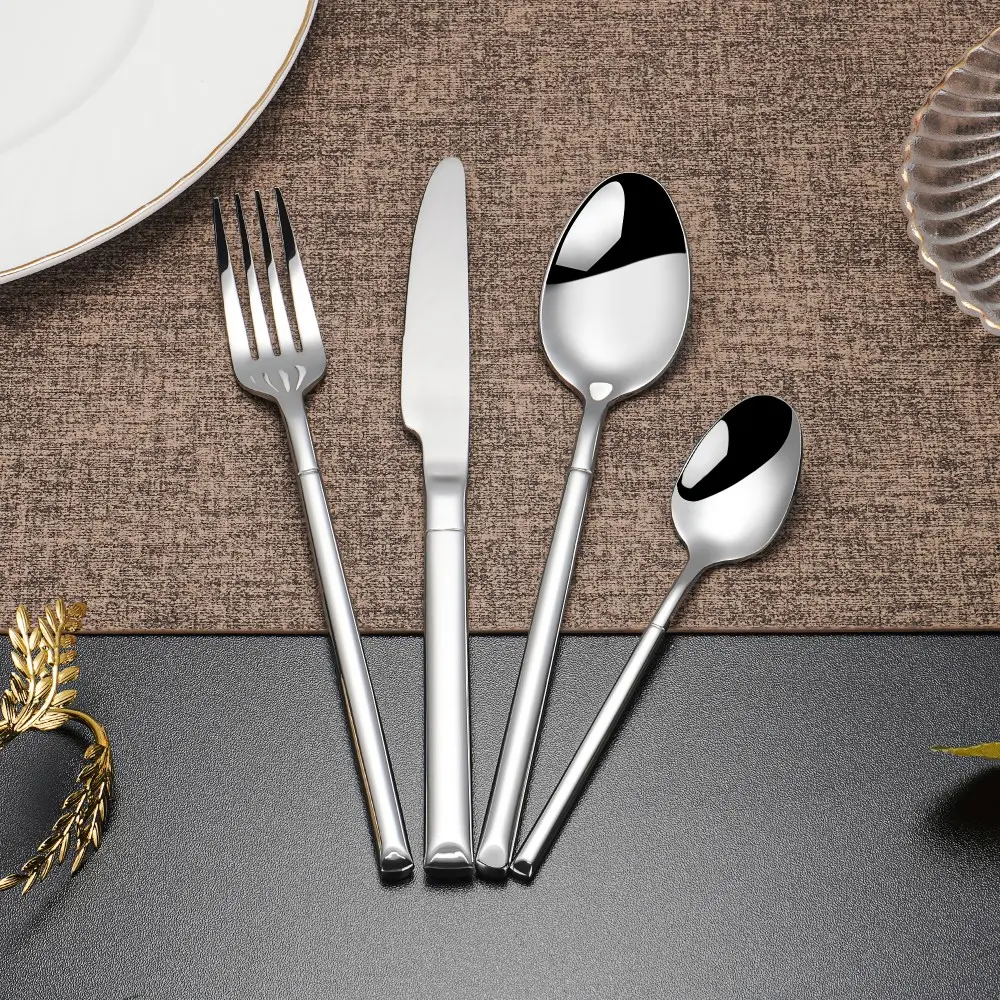 - 4-Piece Set: This wholesale cutlery set includes four classic and practical pieces: a knife, fork, spoon, and teaspoon. This classic configuration covers the most common dining needs.