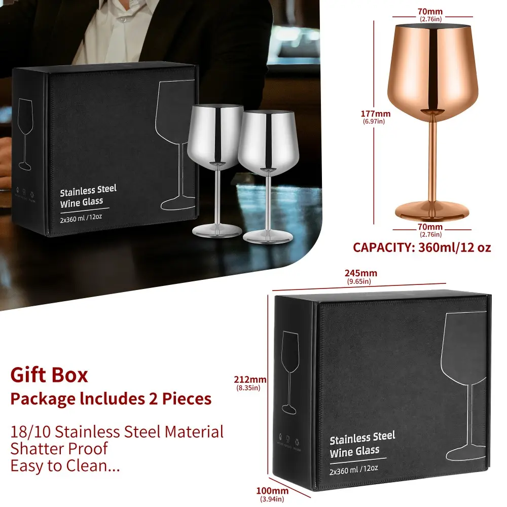 - Premium Materials and Safety: These wine glasses are crafted from high-quality 18/10 stainless steel, meeting international standards for food contact materials. They are BPA-free and non-toxic, ensuring a healthy drinking experience.
